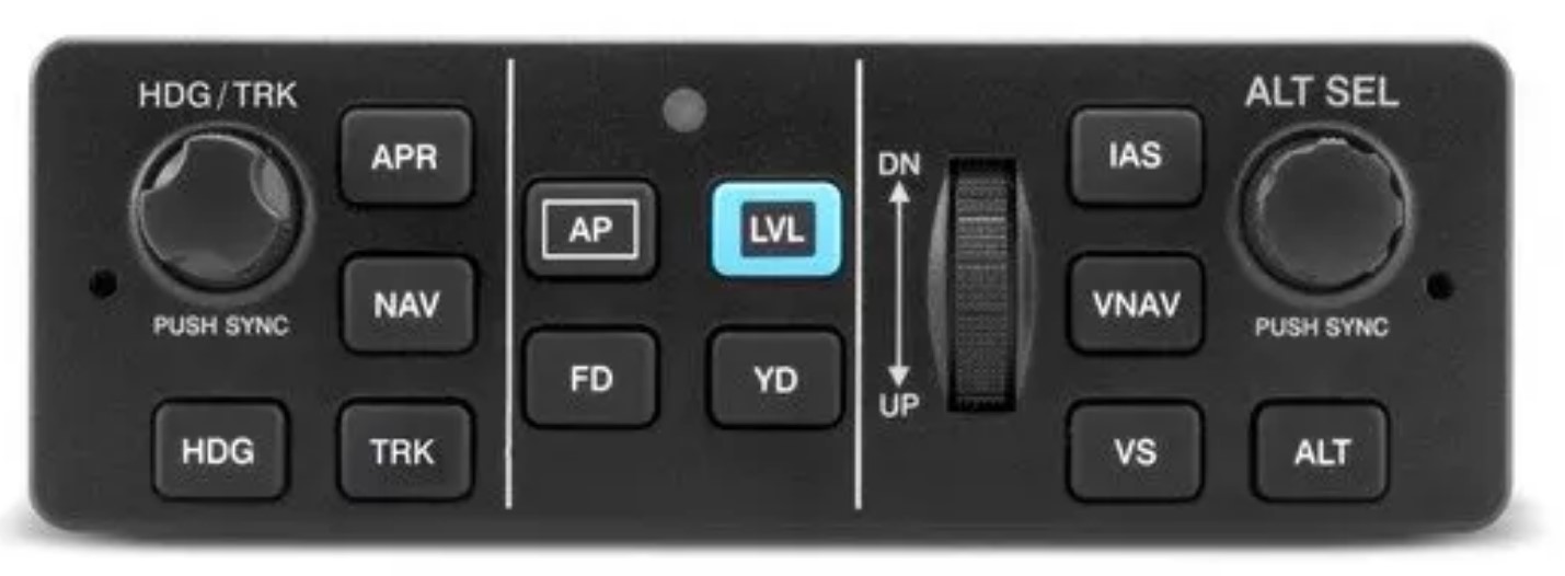 An included mark-width mode controller offers easy access to such lateral and vertical mode selections. An intuitive up-down control wheel on the unit allows for easy and precise adjustment of aircraft pitch, airspeed and vertical speed modes.  AUTOMATIC LVL MODE.  Distracted or disoriented? A dedicated LVL mode button on the autopilot controller commands the autopilot to automatically return the aircraft to straight-and-level flight.