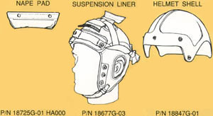 David Clark Company Series K10 Helmet Kits have three components: a suspension liner and an energy absorbing helmet shell with a protective nape pad.