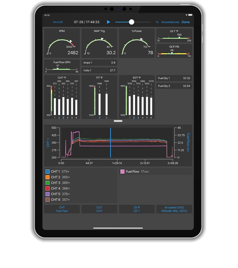 Your data can now be automatically uploaded to select data analysis services to see advanced analytics about your engine. Find out more about our aircraft flight logs.